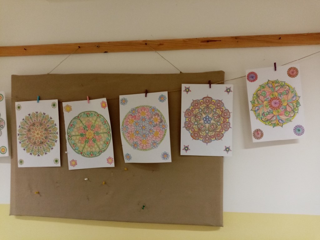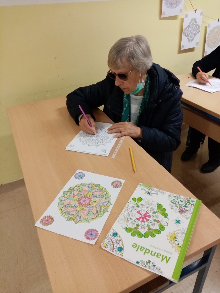 U sklopu projekta Usluge usmjerene povećanju kvalitete života starijih osoba s područja Općine Donja Voća nastavljamo s kulturno-kreativnim radionicama izrade torbi od špage i ukrasnog konca, te sa radionicama bojenja i opuštanja za osobe starije životne dobi. U prostorijama osnovne škole pripremili smo i izložbu likovnih radova polaznika radionica. Mandalama nazivamo upečatljive slike okruglog ili četvrtastog oblika. Bojenje skladnih uzoraka drvenim bojicama je zabavno i umirujuće za osobe starije životne dobi, te potiče njihovu kreativnost u kombiniranju boja i stvaranju originalnih slika na koje su veoma ponosni.