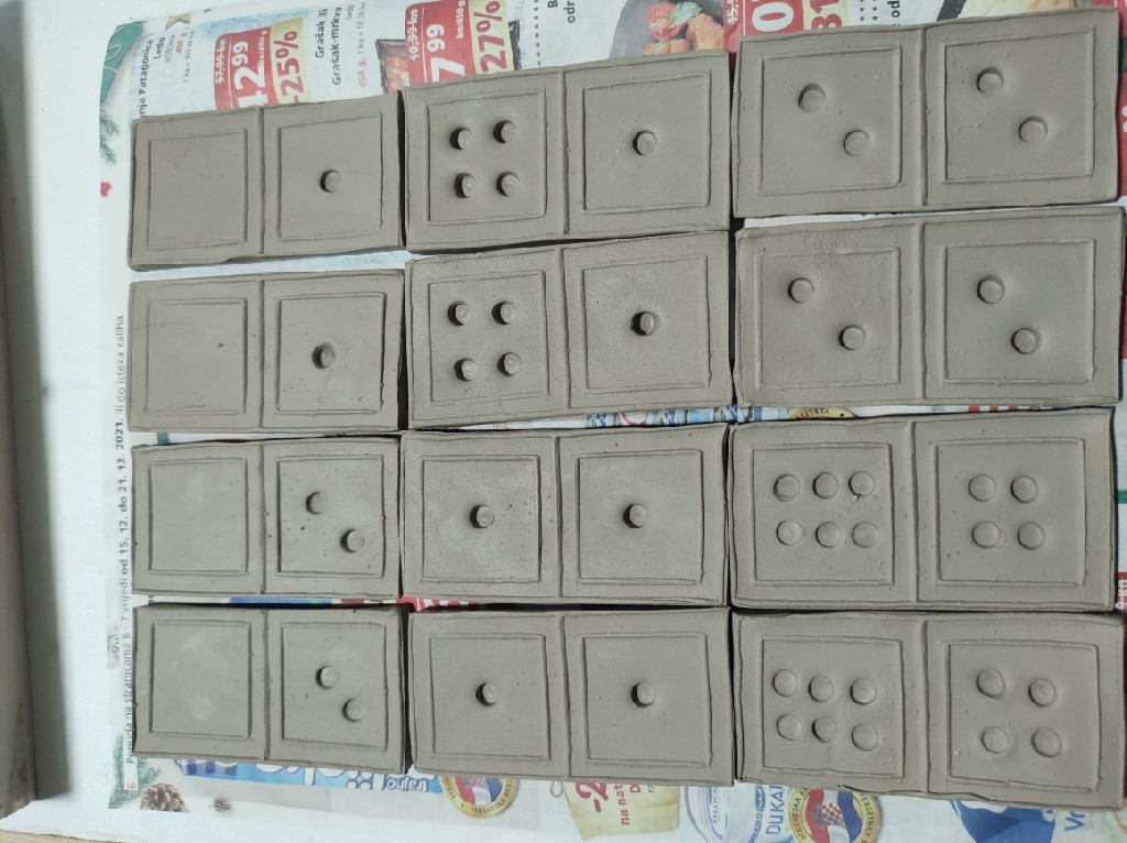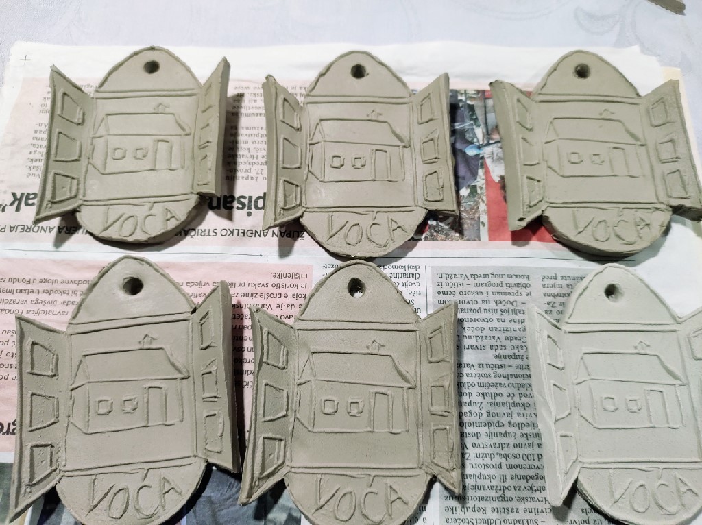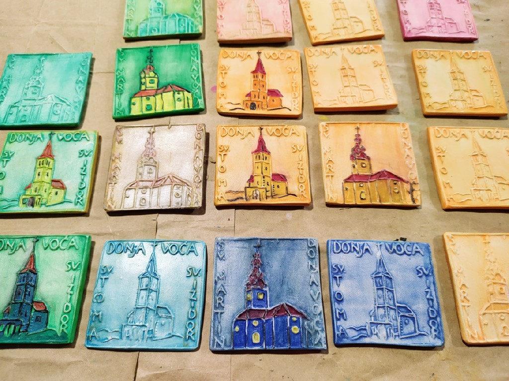 Na ovogodišnjim radionicama keramike izradili smo društvenu igru domino, te izrađujemo i prigodne uskrsne dekoracije s voćanskim motivima.